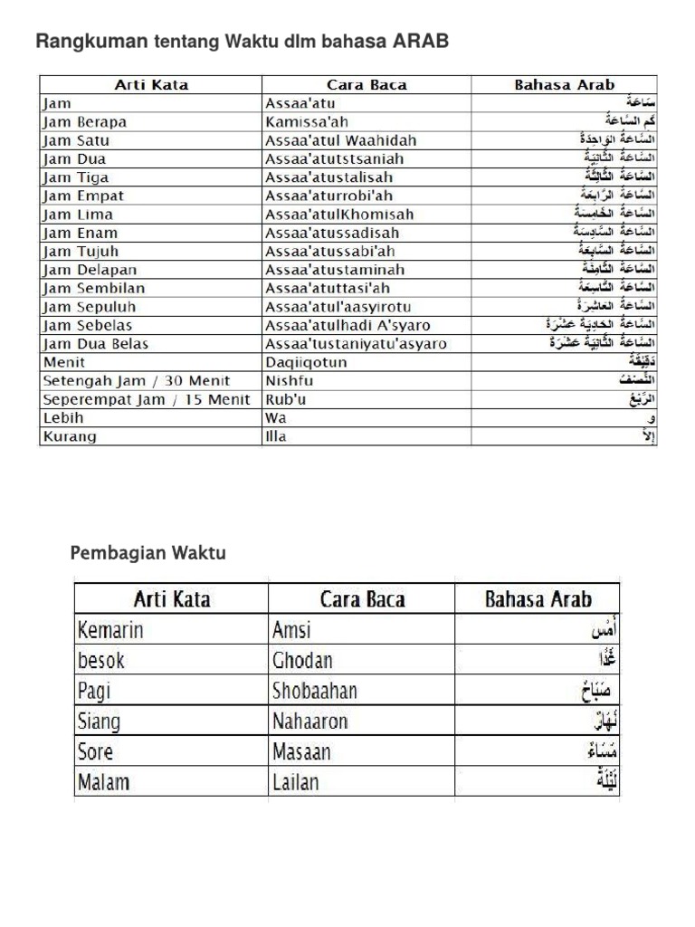 Belajar Bahasa Arab On Instagram Kosakata Pembagian Waktu Yg Sering Di Pakai Dalam Kehidupan Sehari Hari Yuk Kita Hafal Bahasa Arab Adalah Bahasa Al Qur An. JAM DAN WAKTU - BAHASA ARAB TAHUN 4 UPKK Tajuk. Demikian postingan saya tentang bilangan jam dan waktu dalam bahasa Arab.