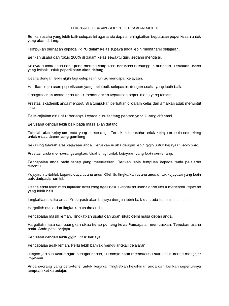 Template Ulasan Slip Peperiksaan Murid Pdf